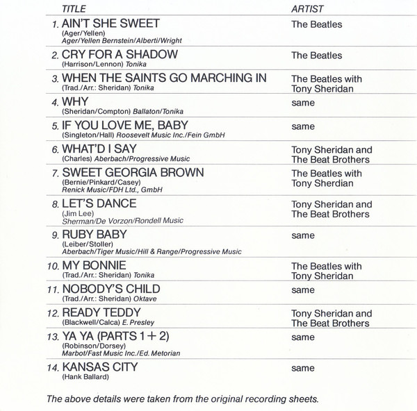 The Beatles / The Beatles with Tony Sheridan / Tony Sheridan And The Beat Brothers – The Early Tapes Of (CD, Comp)
