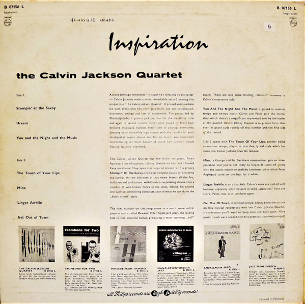 The Calvin Jackson Quartet – Inspiration (LP, Mono)