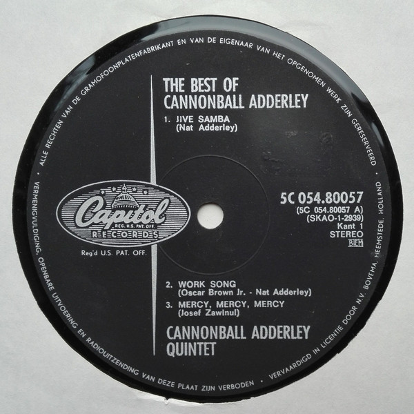 The Cannonball Adderley Quintet – The Best Of Cannonball Adderley (LP, Comp)