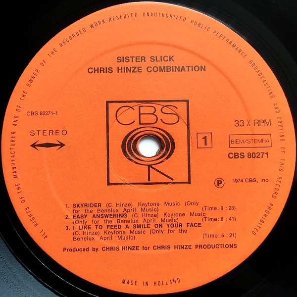 The Chris Hinze Combination – Sister Slick (LP, Album, Ora)