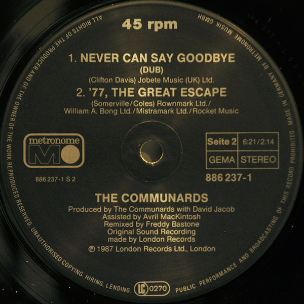 The Communards – Never Can Say Goodbye (Remix) (12″)