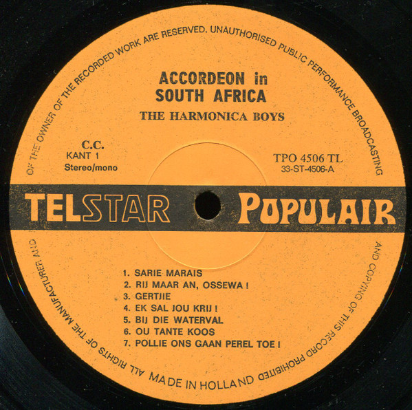 The Harmonica Boys* – Accordeon In South Africa (LP)