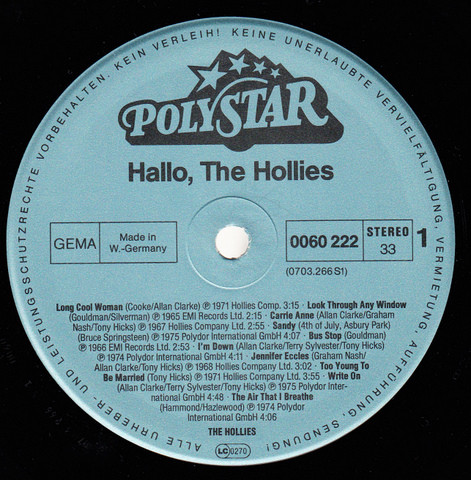 The Hollies – Hallo! The Hollies! (LP, Comp)