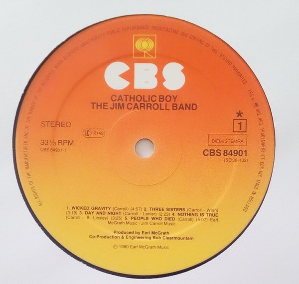 The Jim Carroll Band – Catholic Boy (LP, Album)