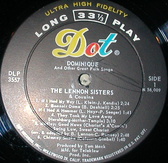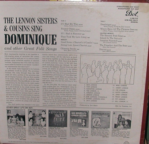 The Lennon Sisters – Dominique (LP, Album, Mono)