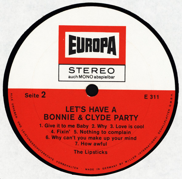 The Lipsticks – Let’s Have A Bonnie & Clyde Party (LP, Album)