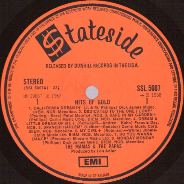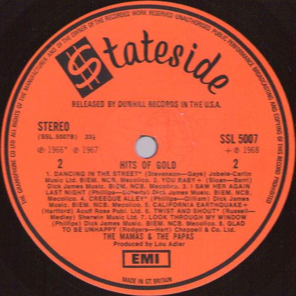 The Mamas & The Papas – Hits Of Gold (LP, Comp, Ora)