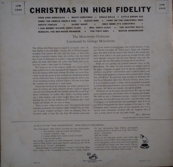 The Melachrino Orchestra – Christmas In High Fidelity (LP, Album, Mono)