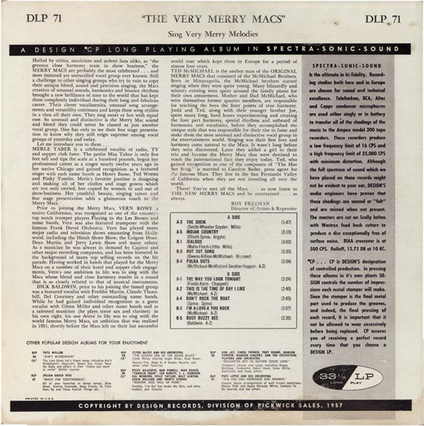 The Merry Macs – The Very Merry Macs Sing Very Merry Melodies (LP, Album, Mono)