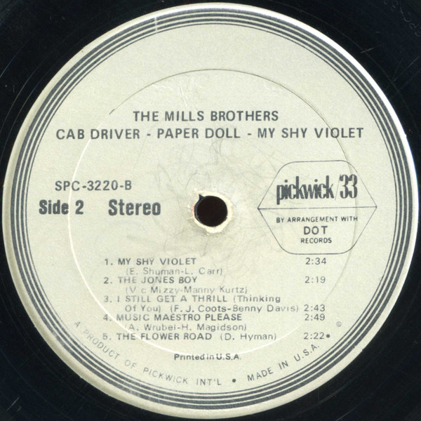 The Mills Brothers – Cab Driver, Paper Doll, My Shy Violet (LP, Comp)