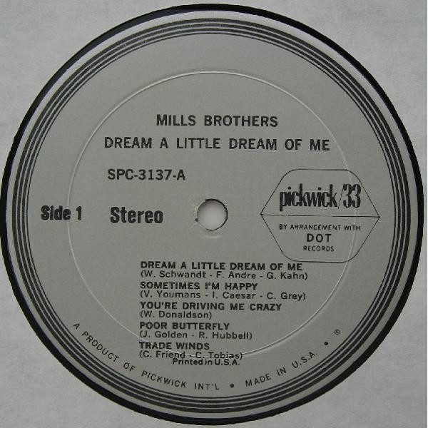 The Mills Brothers – Dream A Little Dream Of Me (LP, Album, RE)
