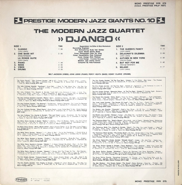 The Modern Jazz Quartet – Django (LP, Album, Mono, RE, RM)