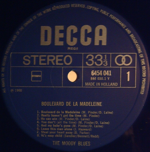The Moody Blues – Boulevard De La Madeleine (LP, Comp, RE)