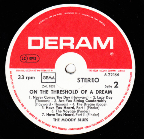 The Moody Blues – On The Threshold Of A Dream (LP, Album, RE)