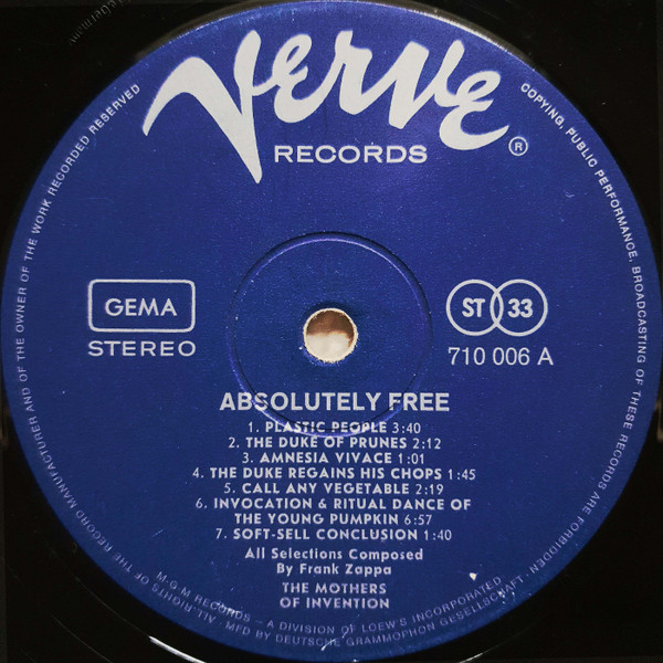 The Mothers – Absolutely Free (LP, Album, Gat)