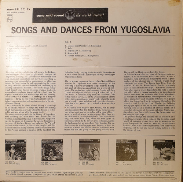 The National Yugoslav Dance Theatre* – Songs And Dances From Yugoslavia (LP)