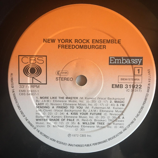 The New York Rock Ensemble – Freedomburger (LP, Album, RE)