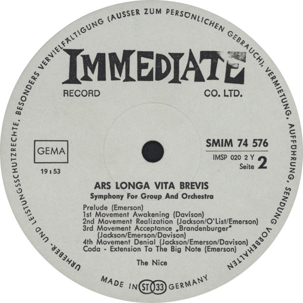 The Nice – Ars Longa Vita Brevis (LP, Album)