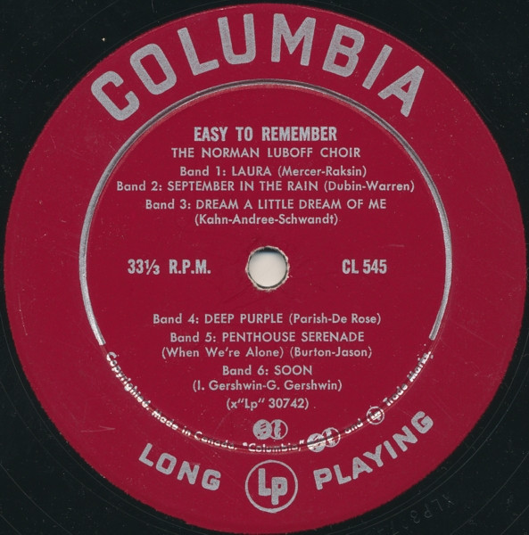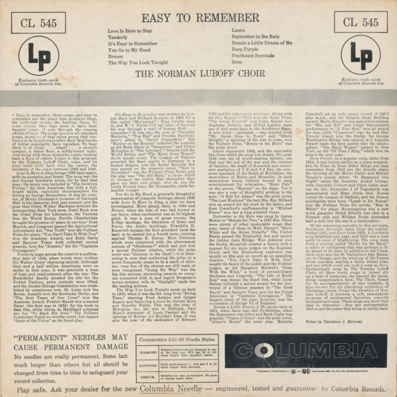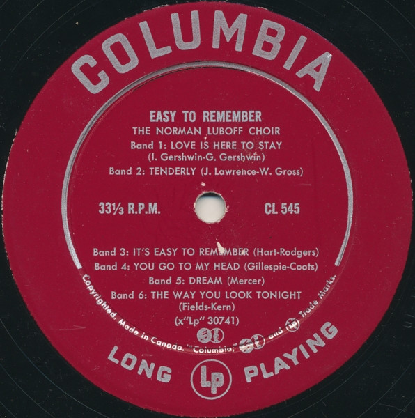 The Norman Luboff Choir* – Easy To Remember (LP, Album, Mono)