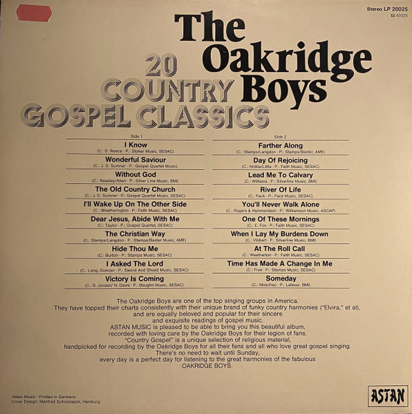 The Oakridge Boys* – 20 Country Gospel Classics (LP, Whi)