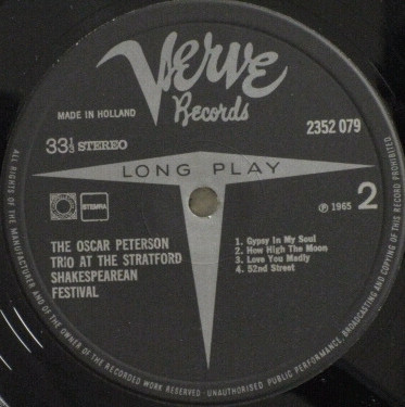 The Oscar Peterson Trio – At The Stratford Shakespearean Festival (LP, Album, RE)