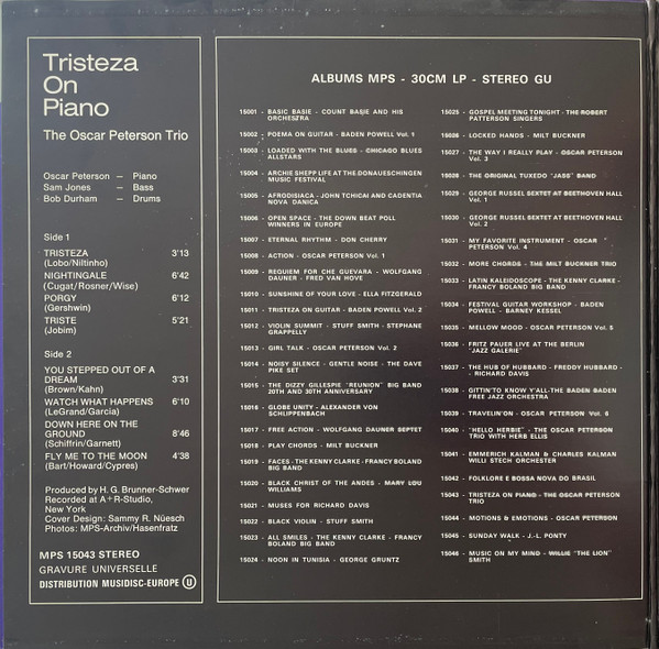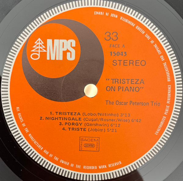 The Oscar Peterson Trio – Tristeza On Piano (LP, Album, Gat)