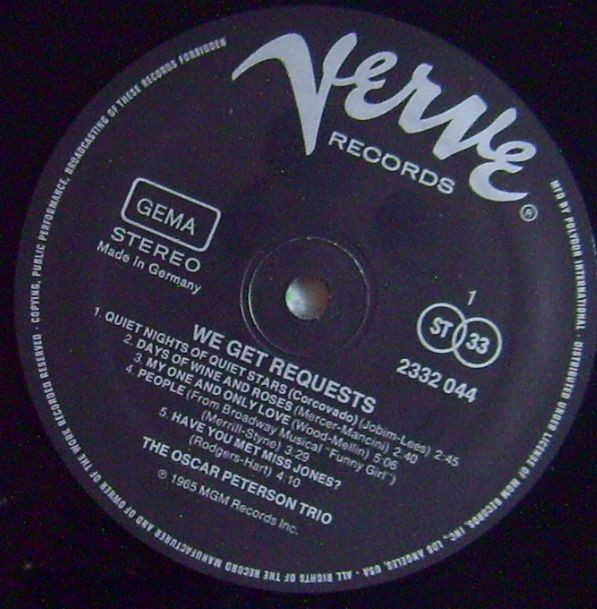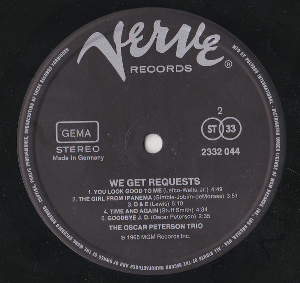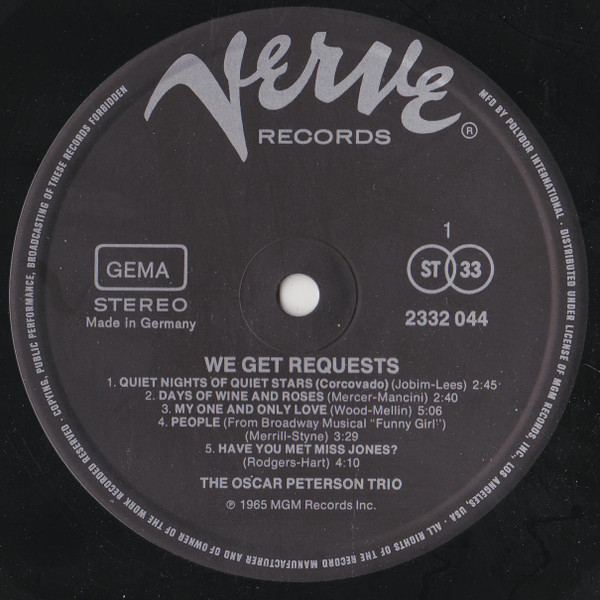 The Oscar Peterson Trio – We Get Requests (LP, Album, RE)