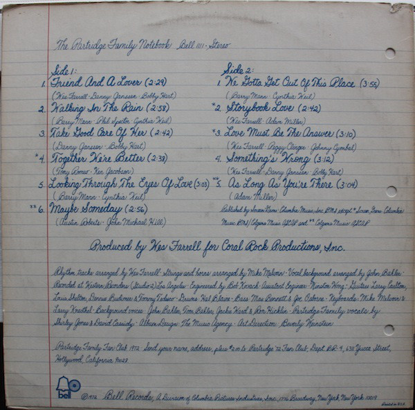 The Partridge Family Starring Shirley Jones (2) Featuring David Cassidy – The Partridge Family Notebook (LP, Album)