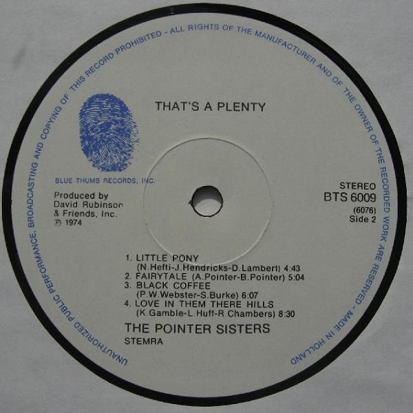 The Pointer Sisters* – That’s A Plenty (LP, Album)