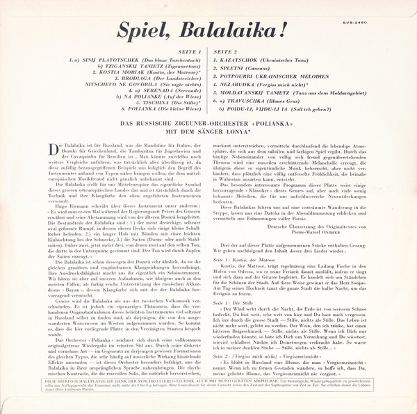 The Polyanka Russian Gypsy Orchestra, Lonya (2) – Spiel, Balalaika! (LP, Album)