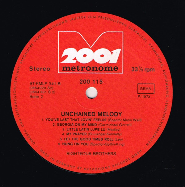The Righteous Brothers – Unchained Melody (LP, Comp, RE)