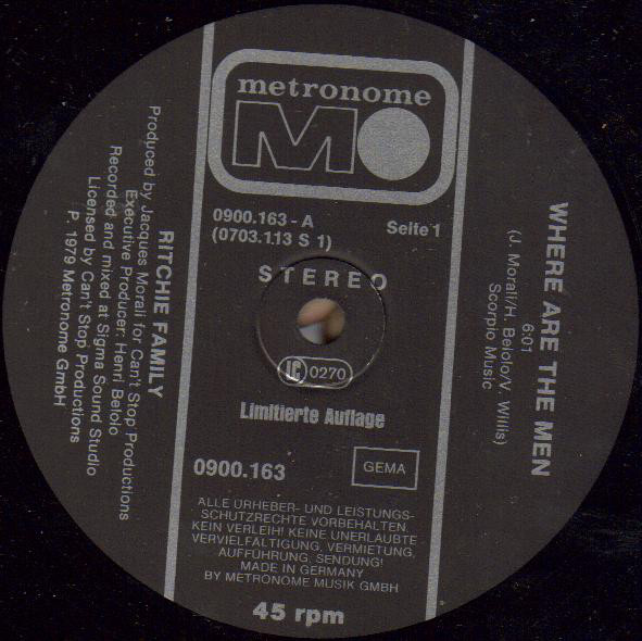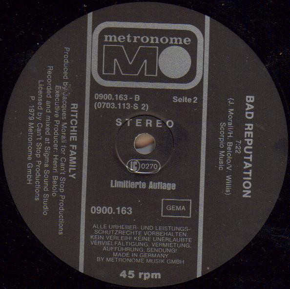 The Ritchie Family – Where Are The Men / Bad Reputation (12″, Ltd)