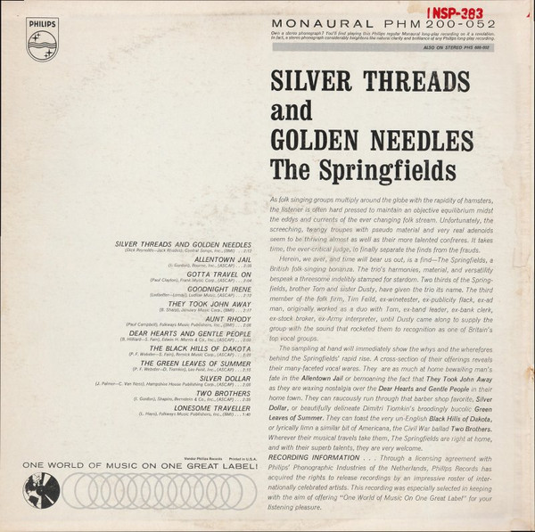 The Springfields – Silver Threads & Golden Needles (LP, Album, Mono)