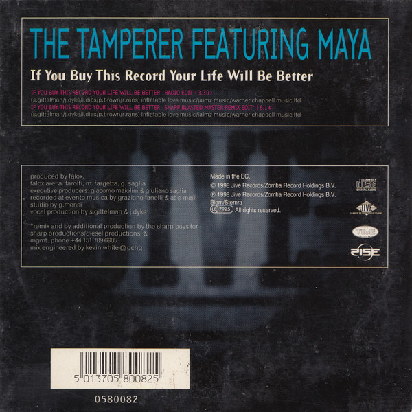 The Tamperer Featuring Maya – If You Buy This Record Your Life Will Be Better (CD, Single, Car)