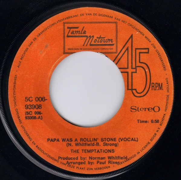 The Temptations – Papa Was A Rollin’ Stone (7″, Single, Yel)