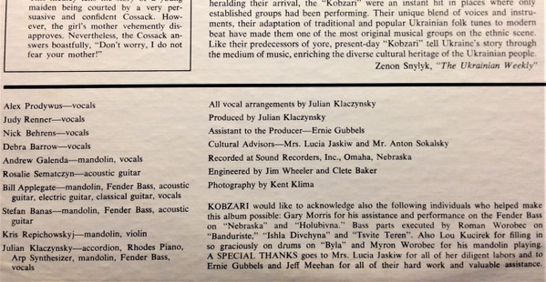 The Ukrainian Ensemble Kobzari – The Dove Holubivna (LP)