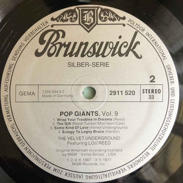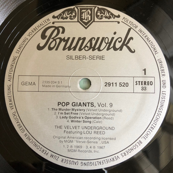 The Velvet Underground Featuring Lou Reed – Pop Giants, Vol. 9 (LP, Comp)