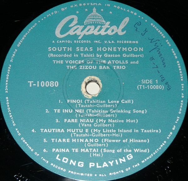 The Voices Of The Atolls And The Zizou Bar Trio – South Seas Honeymoon (LP, Album, Mono)