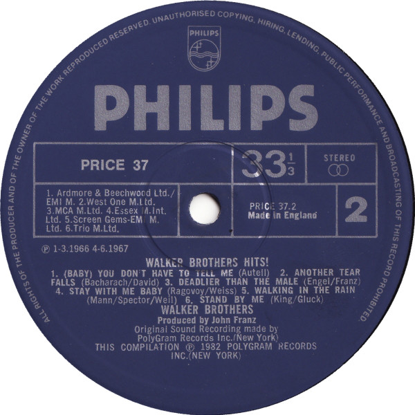 The Walker Brothers – Hits (LP, Comp, RE)