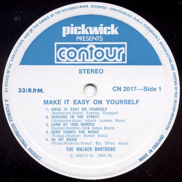 The Walker Brothers – Make It Easy On Yourself (LP, Comp, RE, Whi)
