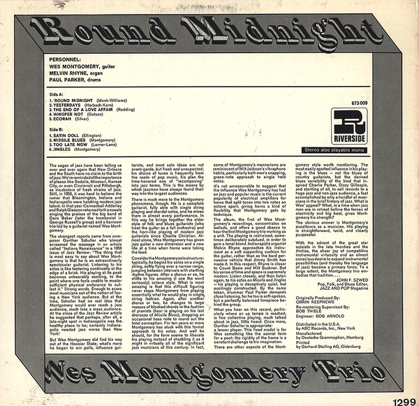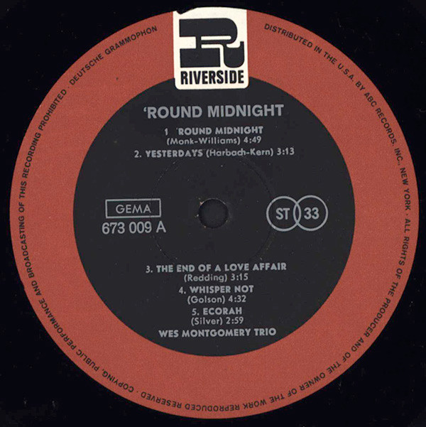 The Wes Montgomery Trio – Round Midnight (LP, Album, RE, RM)