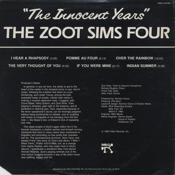 The Zoot Sims Four* – The Innocent Years (LP, Album)