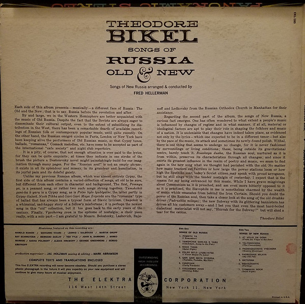 Theodore Bikel – Songs Of Russia Old & New (LP, Mono, 1st)