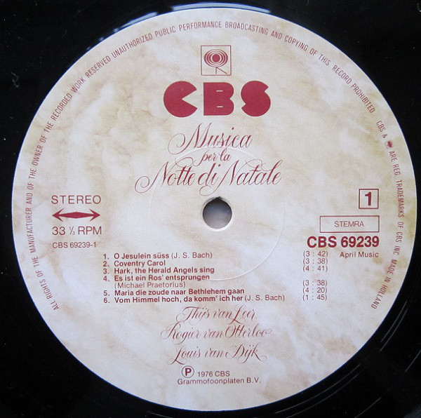 Thijs van Leer, Rogier van Otterloo, Louis van Dijk – Musica Per La Notte Di Natale (LP, Emb)