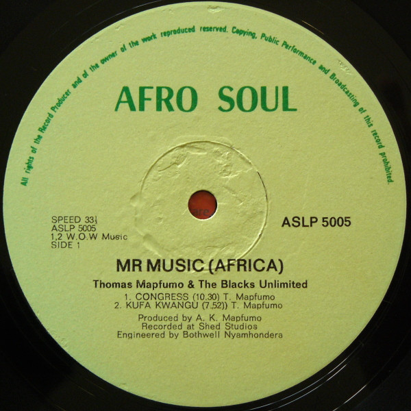 Thomas Mapfumo & The Blacks Unlimited – Mr Music (Africa) (LP, Album)
