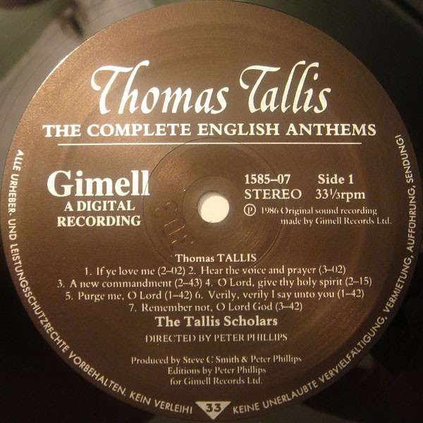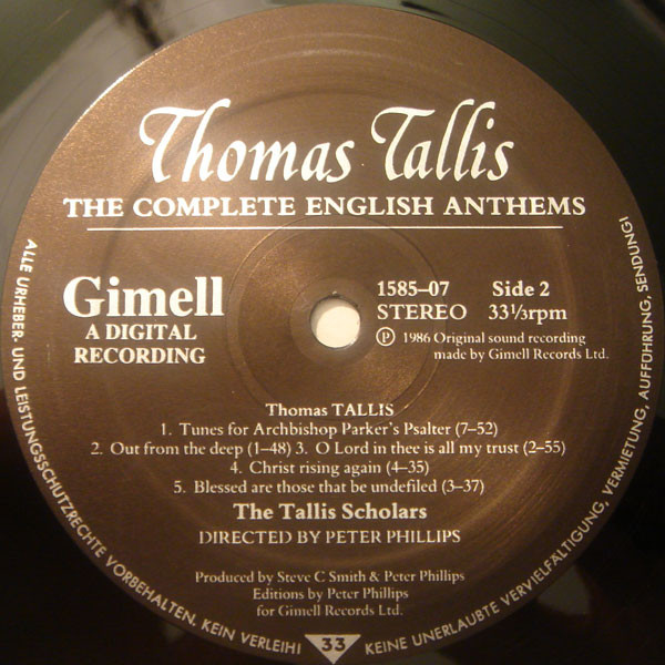 Thomas Tallis – The Tallis Scholars Directed By Peter Phillips (2) – The Complete English Anthems (LP)