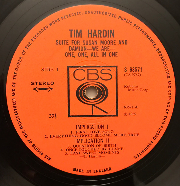 Tim Hardin – Suite For Susan Moore And Damion-We Are-One, One, All In One (LP, Album)
