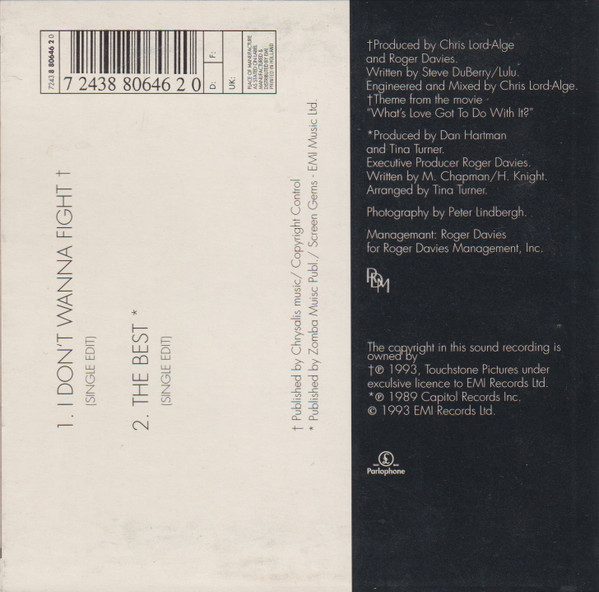 Tina Turner – I Don’t Wanna Fight (CD, Single, Car)