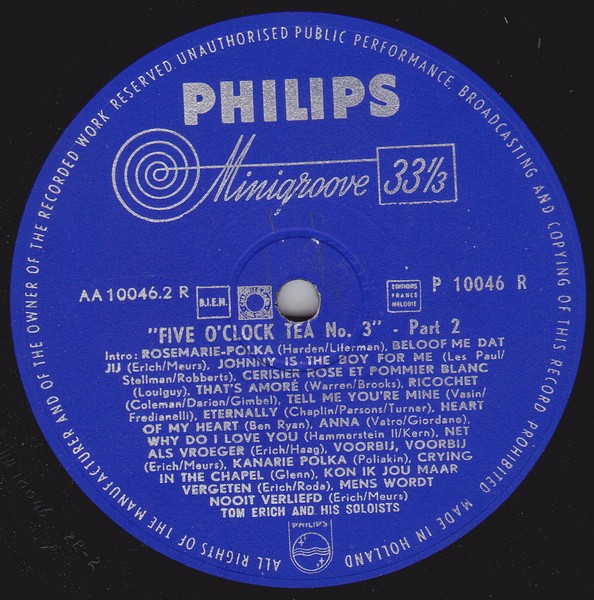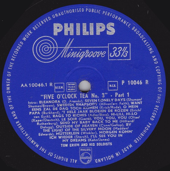 Tom Erich And His Soloists – Five O’Clock Tea No. 3 (10″)