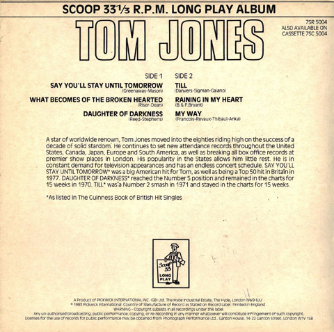 Tom Jones – Tom Jones (7″, Album, Comp)
